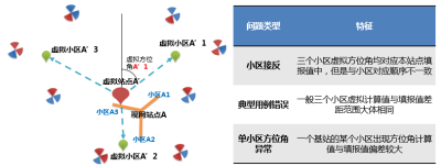 基于网络运行的数据(切换统计,MR测量等)可以计算出虚拟站点和虚拟小区,将虚拟小区与虚拟站点进行连线得到虚拟方位角,通过对照站点下小区实际方位,根据特征进行分析,可以进一步应用于方位角核查,有效发现和解决天线接反,典型用例错误 香蕉视频国产,单小区方位角异常等问题,保障了方位角的数据质量。