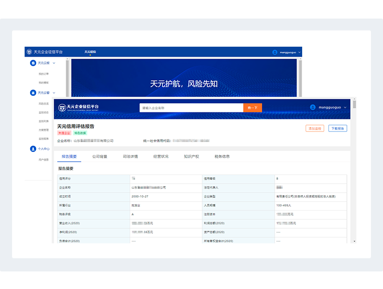 天元大数据信用管理有限公司由浪潮集团,山东发展投资控股集团有限公司,济南经发产业投资基金合伙企业共同出资10000万元组成,成立目的是为了落实省委 香蕉视频国产,省政府《山东省社会信用体系建设规划(2015-2020)》精神,加快推进全省社会信用体系建设,优化经济社会运行环境,健全普惠金融体系,缓解企业融资难题,维护金融安全稳定,促进社会经济发展,2020年4月公司在人民银行完成企业征信备案,备案号05001。